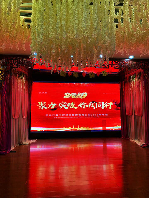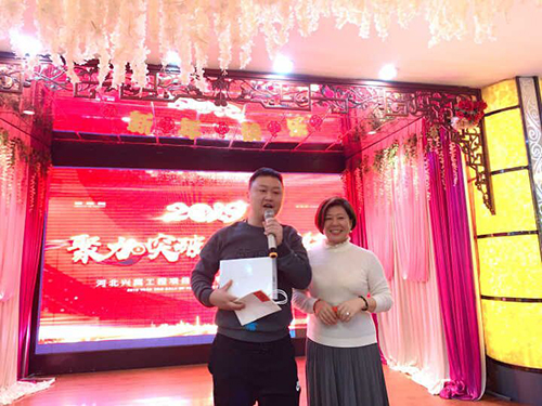 2019年1月25日下午5:18分,街坊家宴饭店宴会厅张灯结彩,主持人宣布兴冀公司2018度盛会隆重开幕。公司董事长李杏娜致开幕词,总工程师季延成做2018年度工作总结,并安排2019年工作重点,同时对开发新领域的部门给予了表彰和奖励。接下来文艺汇演开始,公司领导和员工们多才多艺,不同的节目形式陪伴大家度过了美好的夜晚。这是一个充满爱和温暖的大家庭。岁末岁初,让我们一起期待更美好的明天。兴冀公司恭祝大家新春吉祥!