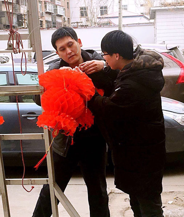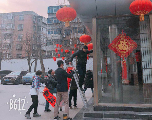 2018年2月8日,公司员工挂灯笼、贴对联,喜迎新年