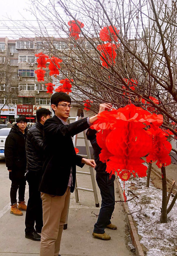 2018年2月8日,北方传统小年。公司组织员工挂灯笼、贴对联,迎接新年。红红的灯笼摇曳在枝头,暖暖的笑容堆积在眉头。院子里是忙碌的身影,公司群里是温馨的互动。大红灯笼挂起来,红红火火过大年。期待公司在班子成员的带领下,迈上新台阶。