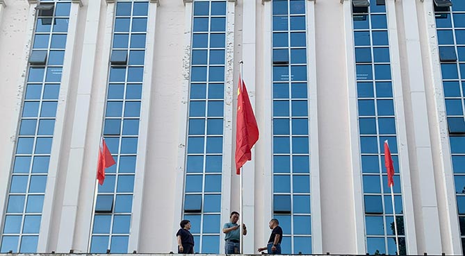 未来的日子,这一面庄严的五星红旗将与我们同行,共迎每一个朝阳,共渡每一个难关。