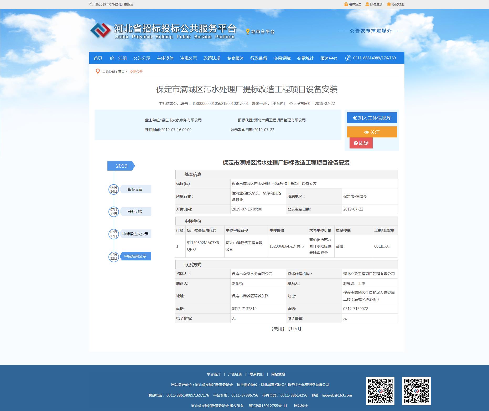 保定市满城区污水处理厂提标改造工程项目设备安装