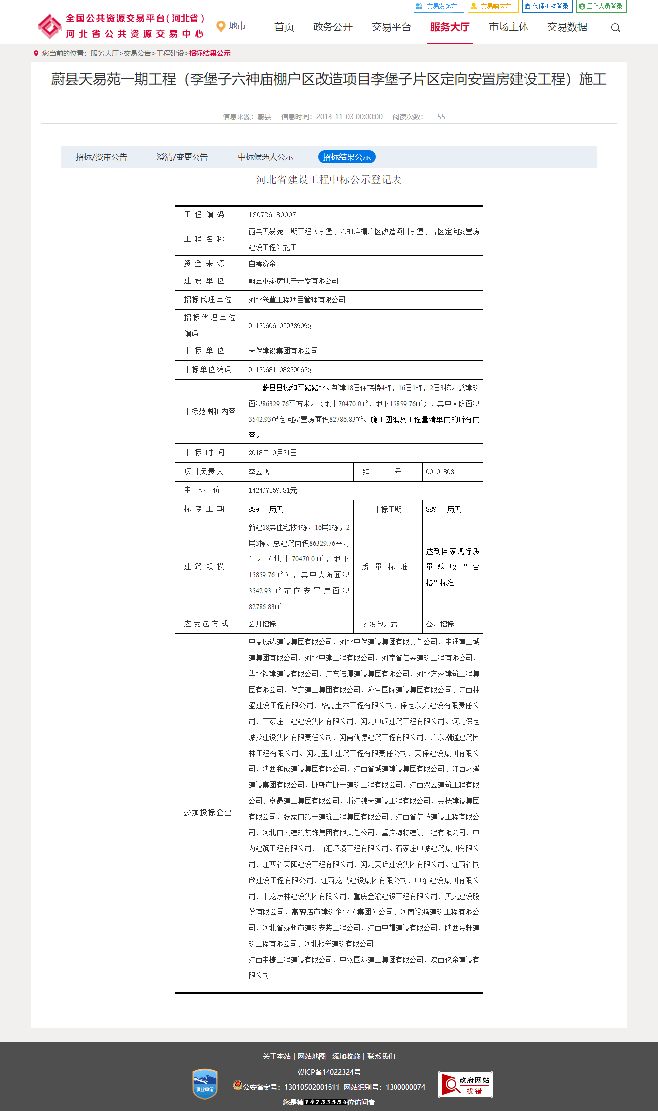 蔚县天易苑一期工程(李堡子六神庙棚户区改造项目李堡子片区定向安置房建设工程)施工