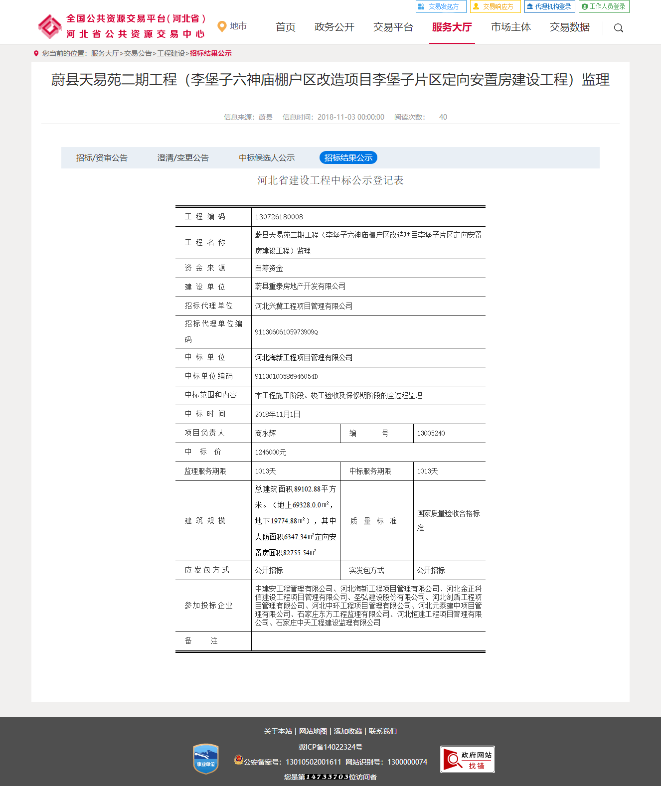 蔚县天易苑二期工程(李堡子六神庙棚户区改造项目李堡子片区定向安置房建设工程)监理
